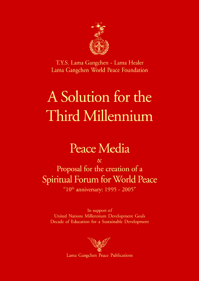 Within this context, Lama Gangchen: focuses on non-formal education as a centrepiece for teaching the real foundations of peace; assesses the media and its importance for peace making and peace loving; points out who is responsible for peace – all of us!! -; sees how even sports can be a source of peace or of its destruction; shares his vision of inner transformation and self-healing which begins not in the science but in the intuition and feeling level of humanity; assists us in walking from separation and duality – the here and there, the outer and the inner, the matter and the non-matter – to the essence of who we really are: oneness (one in all and all in one).